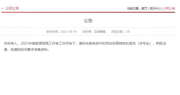 關(guān)于開展2021年度全省工程系列能源專業(yè)高級(jí)工程師評(píng)審工作的通知